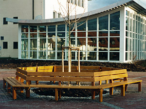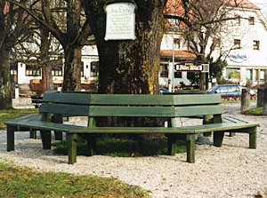 Design rosenheimerholz 8-Eck-Bank in Eiche grün, um Dorflinde ... "sitz de hoit amoi nieder!"